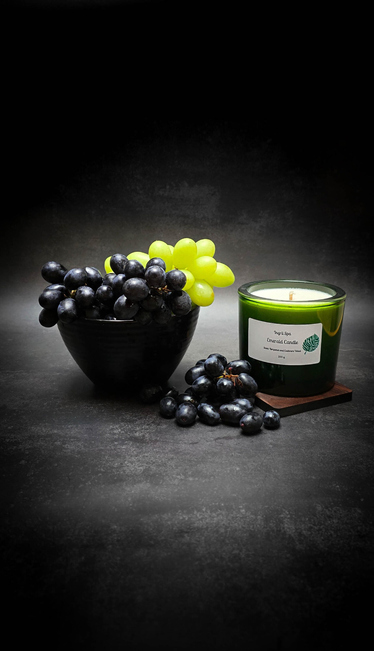 Emerald soy wax candle is made from 100% soy wax and Bergamot, a Cashmere Oil of Cashmere Wood Aromatic Oil and Honey, and Creamy Sandalwood Aromatic Oil.